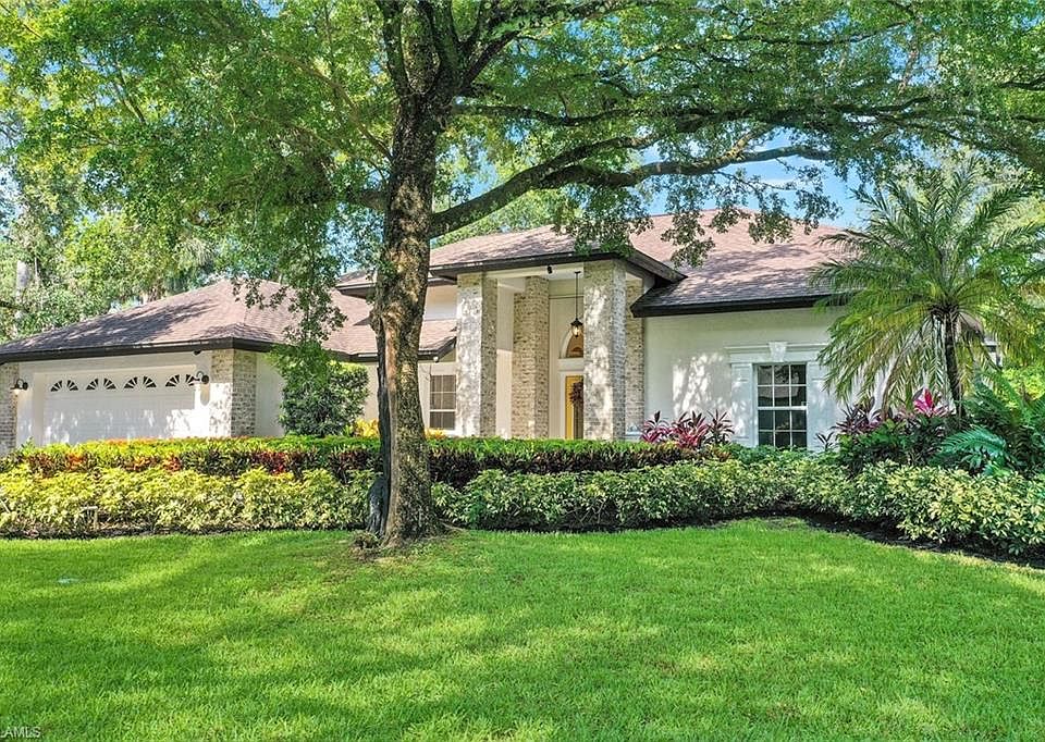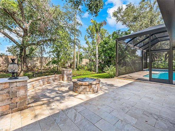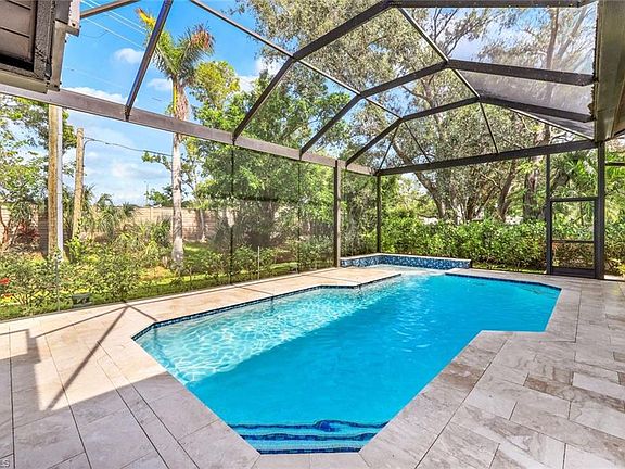 Welcome to this single story, former model home located inside the private gates of Laurel Oaks. This pool home sits on a corner double lot (0.4 acres), and is surrounded by beautiful mature landscaping. The location couldn't be better! Just 20-30 mins from area beaches, as well as shopping: Whole Foods (10 min) Bell Tower Shops (10 min), Coconut Point (15 min), and Gulf Coast Town Center (15 min) drive away. Dreaming of becoming a FL snowbird? The SWFL International airport is a quick 15 min drive, and Punta Gorda Regional airport is a 40 min drive. Well-known area hospitals include Health Park (10 min), Lee Memorial (20 min), and Gulf Coast Medical Center (5 min). The home itself features an incredible outdoor area complete with new marble pool deck, refinished pool, superscreen cage, expansive firepit area, electric hurricane shutters, a large private yard, reverse osmosis water system under kitchen sink, and a whole house carbon water filter and softener. New paint, natural bamboo floor, and newer roof (2017), A/C, hot water heater, kitchen appliances, and pool equipment. Cable and Wifi is included in the HOA dues. Check out the virtual tour link for a full property video.