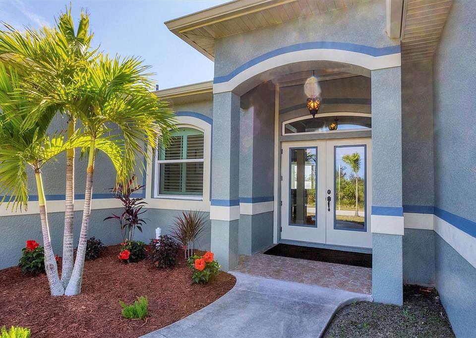 Location, location! South Gulf Cove welcomes you to the Florida lifestyle, in one of the most desirable areas of Port Charlotte. As you enter your view of the lanai and waterway is wide open through zero corner sliders that line the main living area. These literally bring the outdoors in and double your living space. The living room/great room is spacious with a beautiful coffered tray ceiling, and adjoining dining room will compliment your special gatherings. These flow to the open kitchen featuring an oversized granite breakfast bar with plenty of room for preparing and serving. Crowned wood cabinets, stainless appliances, walk in pantry and an cooktop make your life easy. Serve your feast in the large dinette area, which is also open to the beautiful views outdoors. The master suite is lovely with two HUGE closets, and the ensuite features a walk through shower with two rainheads. The guest bedrooms in this split plan can be closed off for privacy. The finishes in this home are lovely, with crowned molding throughout, tray ceilings, elegant light and fan fixtures. Practical features include impact glass, panels for the lanai sliders, concrete seawall, bonus area in garage. The garage also featured an remote control roll down bug screen. The salt water heated pool surrounded by multicolored LED lights and lanai complete your outdoor living, with an additional half bath. Electric Hurricane roll down shutter protect the front and back of the house. The house also features a wired in surge protector, a dog walk, 10k boat lift, new roof (2023), New salt water generator (2025), Interior and exterior paint. Imagine the wonderful times you can spend entertaining family and friends, or just relax enjoying life.