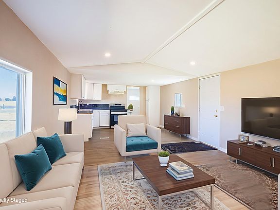 Unique setting within Fairchild Community Manufactured Home Park, located across Rambo Rd, separate from the main park, and near Fairchild Air Force Base. Conveniently close to Spokane Tribe & Northern Quest Casinos, Super Walmart, Spokane International Airport, Amazon DC, and a few miles further to downtown Spokane. Remodeled 1984 home offers approx. 980 sq ft with 3 bedrooms, 2 bathrooms, an open-concept layout featuring wood flooring, vinyl windows, cathedral ceilings, and abundant natural light. The spacious lot with room for outdoor play, gardening, or relaxation with added privacy from neighboring homes. Community allows up to two pets (cats or dogs under 40 lbs each). Monthly lot rent of $680 includes snow removal and park maintenance. Residents pay for garbage, electricity, internet and cable. Occupants age 18+ must be approved. 2 vehicles allowed per home. Contact park manager, Meaghan Griffith, 360-340-1620 for park application and information. Home needs finishing touches.