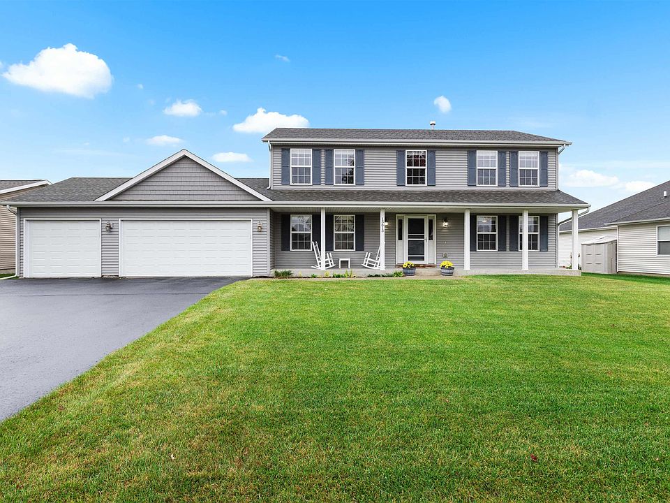 Meticulously maintained home that offers and eat-in kitchen with beautiful cabinetry and granite countertops all open to the nice sized family room. There is also a living room and a formal dining room. The primary suite offers a private bath with double sinks and a huge closet. The three additional large bedrooms share a spacious bathroom with double sink as well. The lower level features a bonus room ideal for entertaining. The laundry can be on the first floor or in the basement. There are hookups for both. The large yard is completely fenced! This home is located in the Prairie Hill/Hononegah school district. Make it yours today!