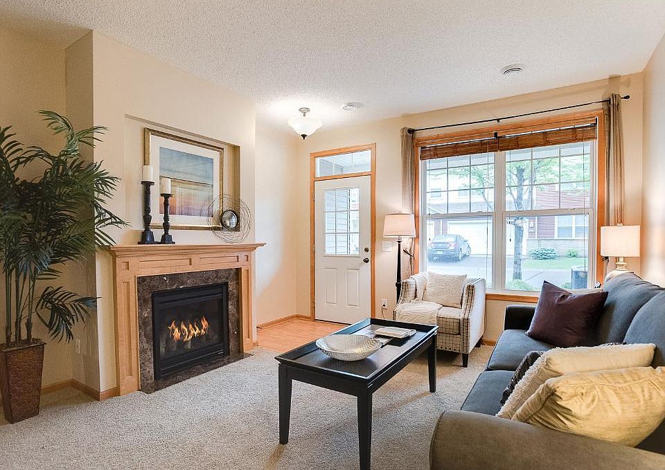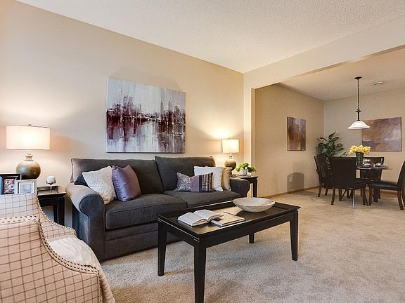 Former MODEL Home! Beautiful,well maintained townhome in quiet Heritage Ponds. Open concept living room/dining room/kitchen with 1/2 bath on main level., along with gas fireplace. Upper level features a spacious master bedroom w/ full bath and walk in closet, a second bedroom, loft, convenient 2nd floor laundry, and another full bathroom. New carpet and fresh paint throughout. Conveniently located near 35E, shopping, and restaurants