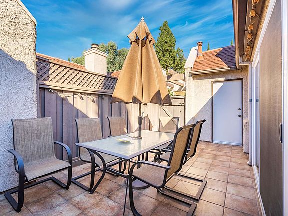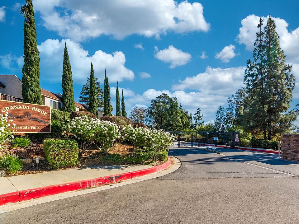 This 3-3 townhome is nestled at the base of the Granada Hills, among the historic Deodar cedar tree-lined streets in the gated Granada Ridge neighborhood. With sleek laminate floors, recessed lighting, and double pane windows throughout, it is a perfect blank canvas for your personal touch. The kitchen boasts beautiful upgrades like soft-closing cabinetry, Caesarstone countertops, Jenn-Air stainless steel appliances, tasteful greyscale backsplash tiles, and a stainless-steel double basin sink. The connected dining area has a large picture window view of the trees as well as a French door opening to the side patio. There you might enjoy a sunset looking out over the trees and the community pool. Upstairs, the cozy living room features a fireplace with a marble mantle and an artful accent wall. The room faces the sliding glass door which leads to another more enclosed, private patio for al fresco dining. The bedrooms feature ample closet space and floor-to-ceiling windows; the bathrooms have new dark marble vanities, bathtubs, and stylish high-end fixtures. The custom master bathroom will bring you ease and delight walking into the frameless glass shower with a rain showerhead, and a handheld nozzle. The nest thermostat will keep your home feeling cozy in the winter and cool in the summer; and the 2-car garage also has a front-loading washer and dryer. This home is situated near amazing parks, libraries, and a huge selection of public and private schools.
