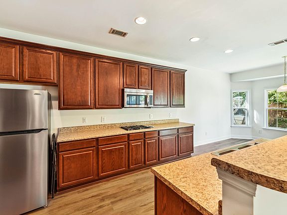 Cozy gas log fireplacePrivate wooded backyardSpacious kitchenLarge island with sinkConveniently located laundry roomDurable laminate flooringStainless steel appliances