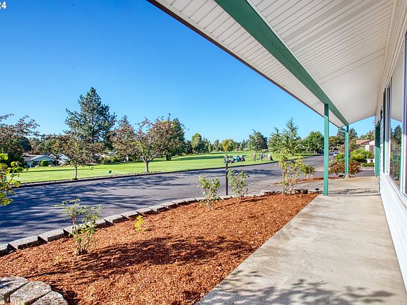 Unique bright beautiful single-level home on a corner lot with the living room facing the golf course located in a 55+ community of King City. This home is a single level, and one of the few that has 2 bedrooms and a bonus room, 2 fully updated baths with waking showers, a granite countertop in the kitchen, and updated kitchen cabinets, and appliances. Solid wood floor throughout the home, a large 2 car garage, and best of all a golf cart side gate to allow the golf cart to be protected under the covered patio and not take the room in the garage. A private fenced backyard and a large covered patio. If you like to be part of clubs or enjoy walking, this is the place to be. Fresh interior paint, popcorn ceiling has been covered with 1/2" brand new sheetrock, cedar siding still present under the vinyl siding with extra insulation. It is just waiting for you to come and see it.