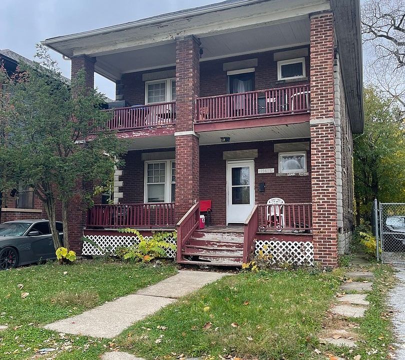 Spacious brick 2-unit on an oversized lot! Each unit features 7 rooms, including 3 bedrooms and 2 full baths, plus separate heating systems and utilities. Enjoy charming open front porches on both levels, hardwood floors throughout, and classic woodwork. The unfinished basement offers front and rear entries, providing great potential for additional space. Large fenced yard with existing garage slab in place. Enclosed rear porch as well. Property is in good condition but being sold as-is. Priced to sell-don't miss this opportunity!