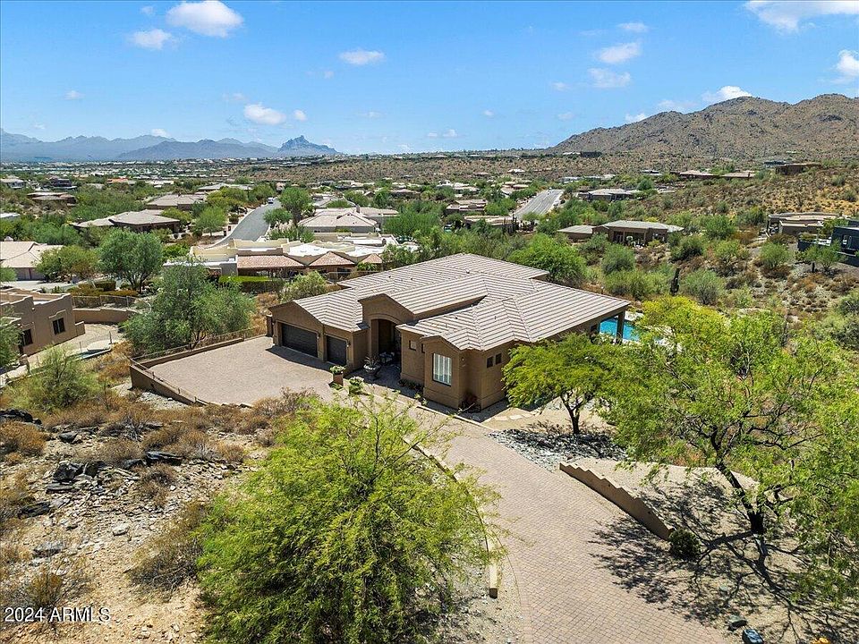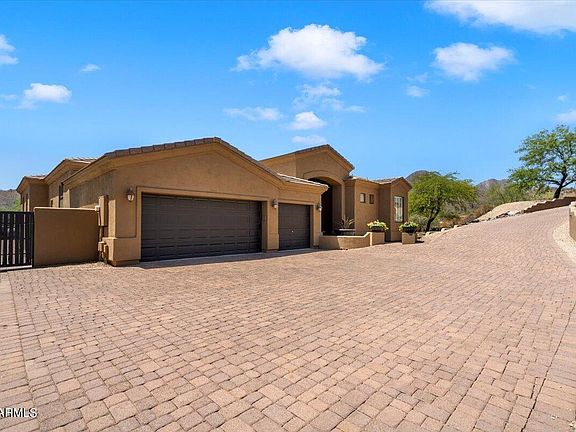 Welcome to an impeccably kept home situated on just under an acre in the serene North Heights of Fountain Hills. This true all one level home boasts incredible panoramic views backing to a preserved wash overlooking the McDowell mtn. Range. Enjoy entertaining with an open and inviting living space that flows seamlessly to a wonderful covered patio. Take pleasure in the many recent updates including a wonderful new media wall with a 100'' electric fireplace to set the mood. Enjoy your privacy with Hunter Douglas powered shades. Jump in to your amazing pool and appreciate the Baja shelf with umbrellas for extra coverage and gaze into some phenomenal sunsets. Pull into your beautiful full paver drive and turn right into a spacious 3 car garage with lots of cabinets for storage.