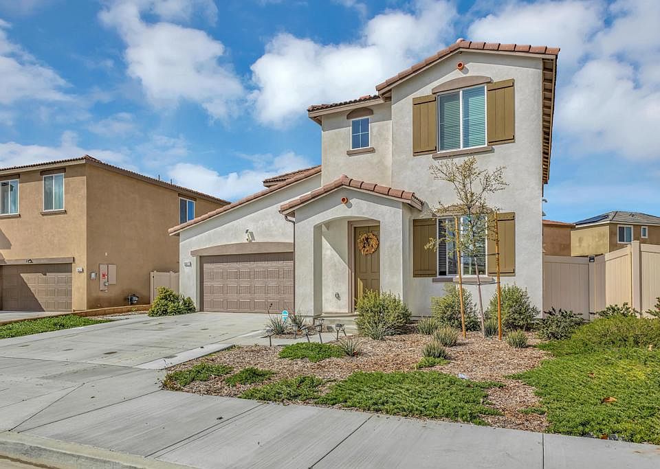 Looking for a new home in a quiet, modern community with added benefits like paid solar panels and large backyard. Look no further! This stunning property, built in 2022, is nestled in Legacy Park in Moreno Valley.Spanning over a generous 5700 sq. ft. lot and boasting 2,370 sq. ft. of living space, this home offers ample room for comfort and convenience. With 4 bedrooms and 3 bathrooms, including a ground-floor bedroom and bathroom, it's perfect for guests or multigenerational living.As you walk down the entry, you're greeted by a newly designed open-concept kitchen that seamlessly flows into the dining and living areas. Upstairs, you'll find a spacious loft and additional bedrooms, including a magnificent primary room with its own ensuite bathroom. The laundry room is conveniently located on the second floor.Additionally, this home comes equipped with solar panels to help reduce your electric bill, adding to the overall value and sustainability of the property.And if that's not enough, this home is just a short distance from a newly constructed park, and dog area along with schools, with shopping and dining options nearby.Don't miss out on the opportunity to make this dream home yours. Schedule a viewing today and take the first step towards homeownership in Moreno Valley