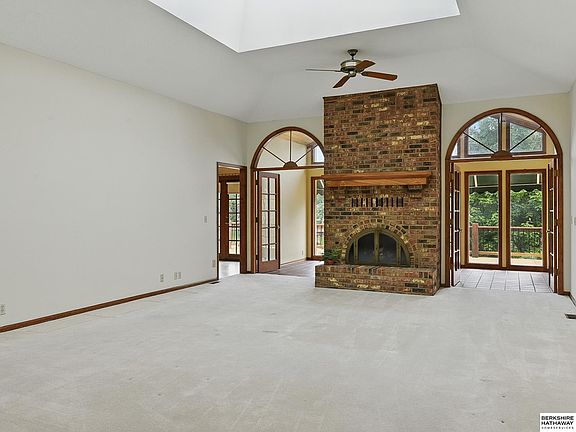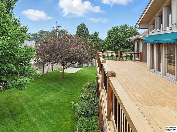 Welcome to this beautifully maintained walkout ranch near Lake Zorinsky, proudly owned by the same family since 1991! A rare find with 3 bedrooms on the main floor plus a flexible den that can serve as an office/formal dining room. The spacious living room opens to a sunroom with a wall of windows and skylights that fill the space with natural light, along with a striking floor-to-ceiling fireplace. The kitchen offers ample cabinets, stainless steel appliances, and an eating area with access to a wraparound deck /no rear neighbors! The oversized primary suite, also with deck access, includes a whirlpool tub, walk-in shower, and large walk-in closet. Main floor laundry adds convenience. The walkout lower level offers tons of storage, a rec room, and space for an additional bedroom. Enjoy Lake Zorinsky's walking trails, abundant wildlife, and peaceful views. Ideal for downsizing without sacrificing comfort. A perfect opportunity to make it your own! Near dining, shopping. PRE-INSPECTED!