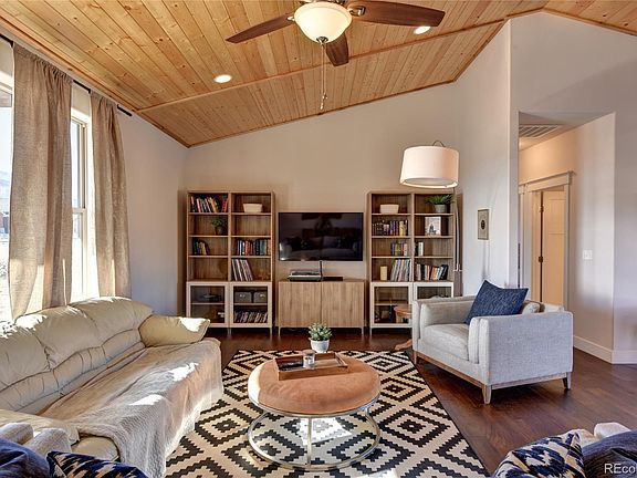 This 1878 square foot newer home includes a large .53 acre lot with a fully fenced back yard.. The location is convenient to all of town's amenities and is only 1.25 miles west of popular East Main Street. There are expansive views of Mt. Princeton from the front and Buffalo Peaks from the rear of the property. Enjoy main level living with a split floor plan to enhance privacy. The living room, dining room and kitchen have an open floor plan, making it easy to entertain guests. The kitchen boasts a pantry, plenty of cupboards, counter space and bar seating at a large peninsula. This home has lots of upgrades including granite counter tops throughout, beautiful engineered hardwood floors and tongue and groove pine ceiling in the main area, tiled showers and tub surround. Come see this property today!