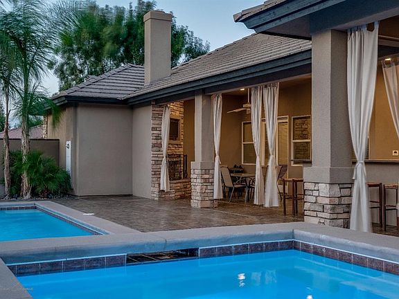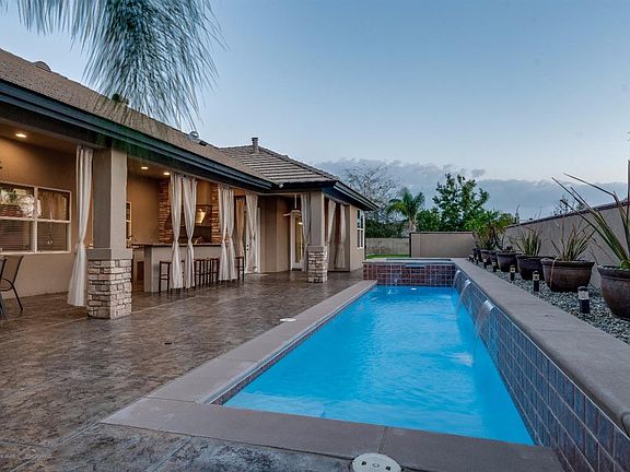 Exceptional Silver Oaks Estate home with pool,spa, and unbelievable huge RV/Shop approx 4400 sq ft. with extensive amenities throughout. This home has stunning entertaining areas including a full service bar W/TV's,Ice maker,frig,sink E-vac fan, plus media room with Derion 7.1 surround sound, with private resort like patio w/ outdoor kitchen-spacious sitting area, TV, and wood burning fireplace.... overlooking 3 tier waterfall pool and spa. Energy efficient tinted windows,LED lighting,surround sound throughout,zoned a/c. Custom travertine flooring,custom decorative rock accents, exposed beam,granite island kitchen with upscale SS appliances including built in refrigerator. Large master bedroom with french doors, two walk in closets with custom built ins, master jetted and lighted tub with waterfall and temp control.Shop has airlines throughout,2 stage air compressor,2 post challenger lift, wash racks,600 ft storage rm,polished concrete and much more.