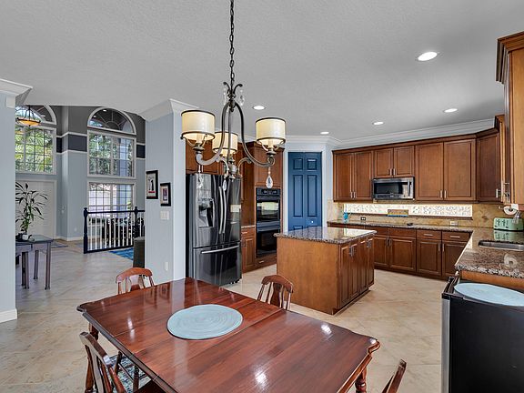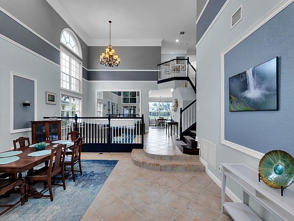 Welcome to this stunning 6 bedroom, 4 bath home, with 3 car GARAGE located at 15619 Messina Isle Ct. 4,878 total square feet on a wide lakefront lot. This well-maintained residence is located in a preferred location with a tree lined cul-de-sac street. Huge resort style heated, automated saltwater pool with splash pad and spa overlooking lake with screened lanai for entertaining. Ideal layout with 20 foot ceiling heights and 8 foot doors. 1 bedroom & full bath downstairs, 5 bedrooms upstairs with separate children's wing and guest en suite. Deep walk in closets provide ample storage. Great Value! Saturnia Isle community amenities include: 24 hour manned gate, clubhouse, 2 pools, tennis courts, fitness and aerobic facility, 2 playgrounds, basketball courts, walking trails & bike paths.