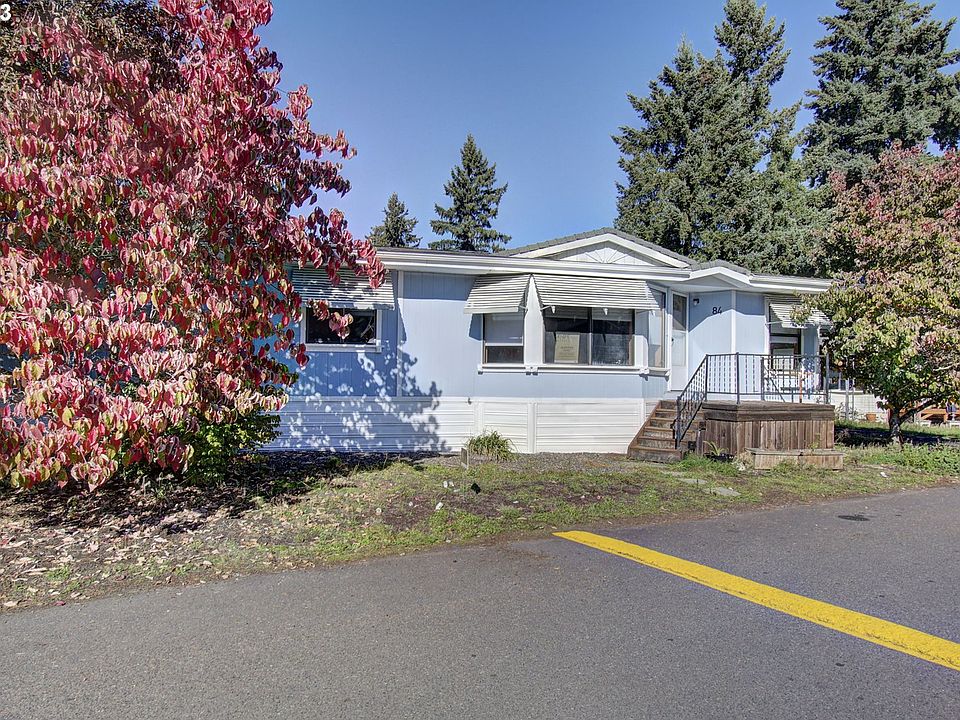 This 1989 Manufactured Home on Lot 84, has a great open floor plan providing 1,388sf, 3 Bedrooms, 2 Bathrooms. Was weatherized approx. 3 years ago. Huge Master Suite with jacuzzi tub. Kitchen with New Stainless Appliances! Updated Laminate Wood Flooring. New Window Blinds throughout. New Light Fixtures throughout and new Doors. Whole house exterior Paint. Covered patio deck overlooking fenced backyard. Detached Carport with storage. Also includes Stair Lift. Lot fee $886.00 includes water/sewer."