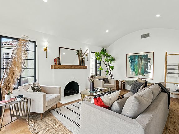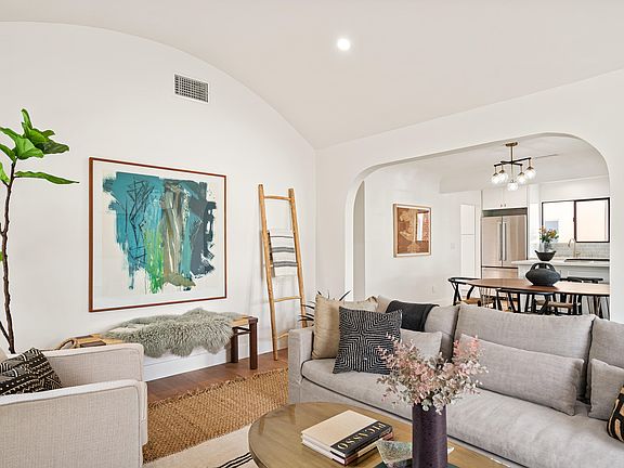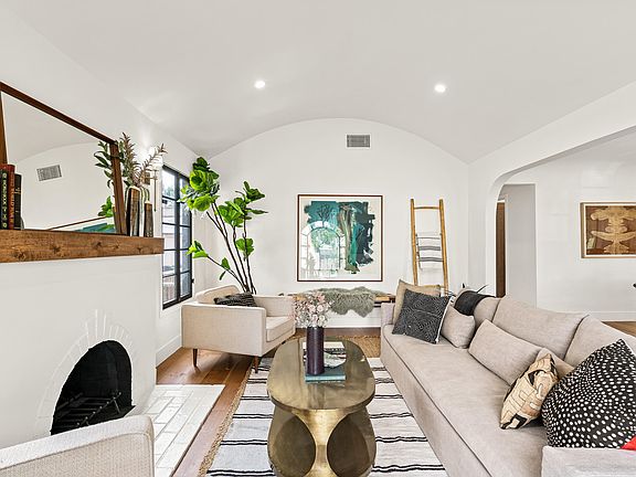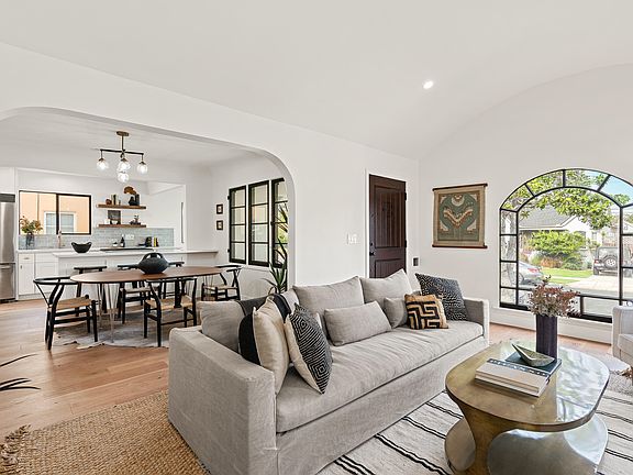 Exerting responsible social distancing and respectful sanitation, we are showcasing this spanish style, contemporary comfort and on-trend home, designed to impress the second you step up to the covered porch. Inside, engineered wood floors and recessed lighting flow throughout the open-concept layout that's bathed in soft natural light. The galley kitchen is open and generous in size with quality stainless steel appliances, new shaker-style cabinets, quartz countertops, and views over the breakfast nook with built-in seating with storage, formal dining, and the living room. Stunning arched windows mirror the tall curved ceiling in the living room and perfectly frame views over the yard with newly landscaped gardens, plus you will have new fencing and gorgeous gates. There's a sunny patio where you can host guests and have memorable BBQs. Additional features include a new garage door, a new HVAC system, and a tankless water heater. With this tasteful transformation of an already beautiful home, you'll be happy for years to come in the heart of LA! As we carry on with ''business unusual'', feel free to do a drive-by, watch the attached video tour or reach out for more information.
