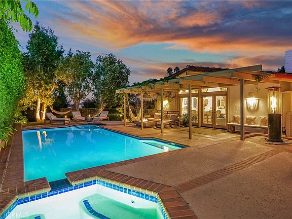 The primary suite offers a spa-like experience with a newly remodeled bathroom, two custom walk-in closets, and a private balcony overlooking the serene backyard. The brand-new designer kitchen connects seamlessly to the family room and a vine-covered patio with views of the pool and spa, outdoor kitchen and the outdoor dining area set under a centenary olive tree. Enjoy your morning coffee listening to the waterfall and birds singing surrounded by nature, like you are living at a luxury resort.