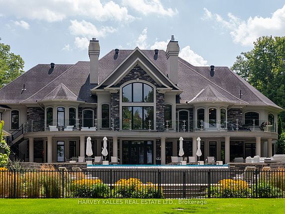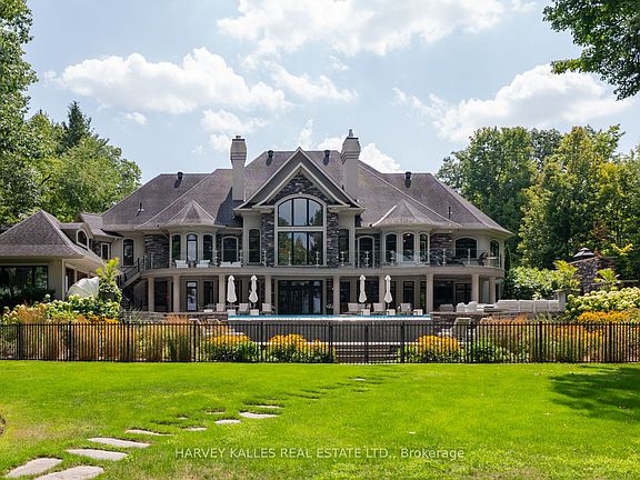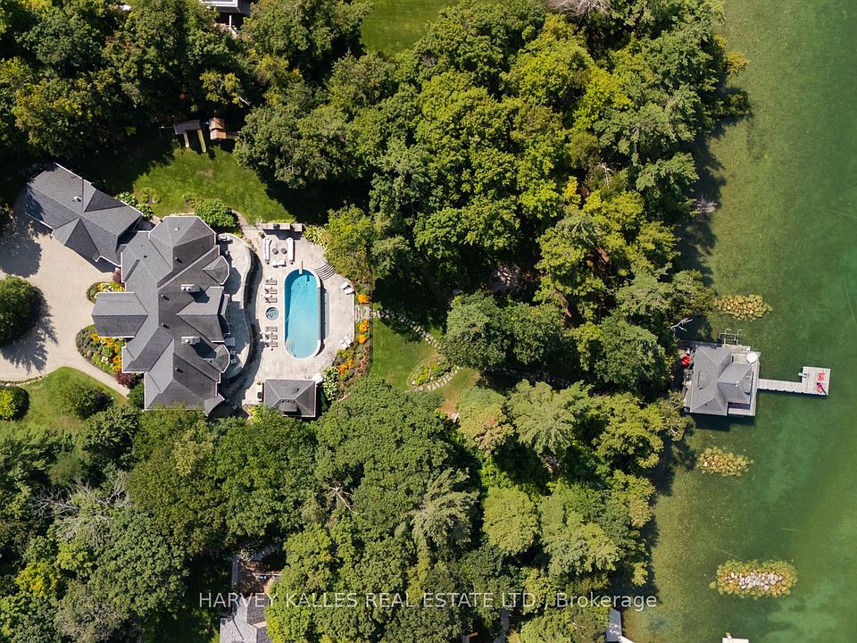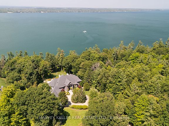 Stunning World-Class Waterfront Estate on Kempenfelt Bay / Lake Simcoe! Privately nestled along one of the most prestigious and coveted roads on Kempenfelt Bay, this extraordinary estate is offered for sale. Gated and masterfully designed, the property showcases the pinnacle of craftsmanship, elegance, and timeless luxury. Envisioned as a true family compound, the estate comprises multiple residences designed for entertaining and privacy: the grand main house, a private apartment, a boathouse, and a cabana. Together, they provide 10 bedrooms, a bunk room accommodating 8, 11 bathrooms, 2 full kitchens, and 3 kitchenettes offering exceptional flexibility for family, friends, and guests. The main residence features a one-bedroom loft with full kitchen and bath, while the rare water lot highlights an Incredible one of a kind boathouse with kitchenette, bedroom/bathroom, living/dining with folding glass doors for indoor/outdoor lakeside living, double slip wet boathouse, permanent dock, extensive decking, remote lifts. Poolside cabana with dramatic fold-away doors continue Outdoor living elevated with frameless glass railings, expansive stonework, covered and uncovered sitting, lounging and dining areas are perfectly positioned for breathtaking sunsets and lake views. Resort-style amenities define the exterior, including a Betz Gunite pool with waterfall, infinity edge, and hot tub, glass-walled terraces, a poolside BBQ pavilion, and a cozy wood-burning fireplace surrounded by intimate seating. Inside, refined details abound: Incredible Chefs Kitchen, reclaimed antique elm hardwood floors, a custom wrought-iron staircase, elegant crown mouldings, four gas fireplaces, and extensive soundproofing for total comfort and privacy. A true one-of-a-kind sanctuary, this world-class waterfront estate must be experienced to be fully appreciated. Presentation, Photo Gallery, Floor Plans In Link.