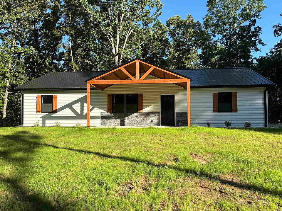 READY, SET, GO!!! Here's your chance to own a Brand-new home in a country setting off a main road!! The home is placed in a wooded setting on 6.5 acres. It features a spacious and open floor plan that blends living and comfort. The main suite highlights a generous walk-in closet and an ensuite bathroom, complete with a tiled shower and dual sinks. Luxury vinyl flooring throughout the home. Kitchen has quartz counter tops and open shelving along with a dedicated pantry and laundry room. The covered back patio is perfect for enjoying the outdoors. The property has cleared trails through the woods and a seasonal stream. Seller is willing to build a carport or garage for an adjusted price.