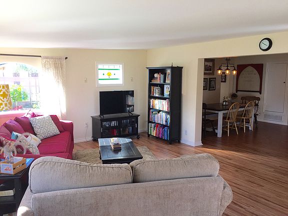 Wonderful, updated family home with 4 bedrooms and 1.5 bathrooms. Open kitchen with stainless appliances, recessed lighting, and dining area. Light and bright living room addition with backyard views. Features include wood-like floors, mirrored closet doors, scraped ceilings, french doors, upgraded lighting, ceiling fans, and newer windows. Home has central air conditioning and heating. Large backyard with newer patio cover perfect for entertaining. Attached two car garage with roll-up door. Local park close by.