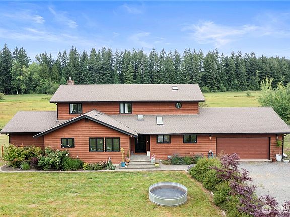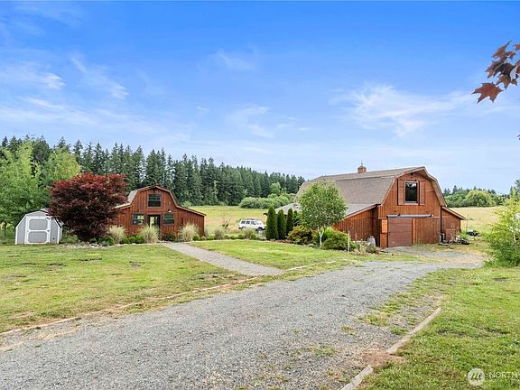 Experience peaceful country living w/ breathtaking views from this custom home overlooking 36 majestic acres. Home features a gourmet kitchen w/ built-in buffet & walk-in pantry. Relaxing living rm w/ wood FP. Office w/ French drs. Main flr primary w/ vaulted ceilings, deck access & spa bath w/ soaking tub. Upstairs you’ll find a Jr. suite w/ full bth & large bonus rm. Dream property boasts a gorgeous modern barn w/ loft—perfect for weddings, events or a luxury retreat for your horses & farm friends. Plus, a charming smaller barn currently used as an office. Discover trails that lead through 10 acres of hay-producing pasture into your own secluded forest. Unwind on the back deck & watch the wild elk roam. Your rare private sanctuary awaits!