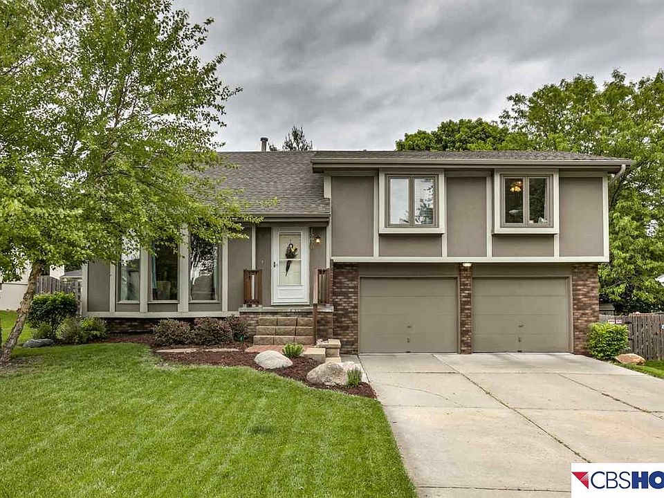 Sharp Multi-Level on Cul-de-sac in Lakeview Heights! Open Plan features vaulted ceilings, stone FP & neutral paint. Modern Kitchen has white cabinets, bkfst bar, tile flring & splash+kitchen appli. Dinette opens to 14x14 deck. Mstr has tray ceiling w/fan, his/her closets & ¾ bath w/tile shwr & flring. Finished LL walkout makes great Family/Play Area (climbing wall excluded). Fully fenced, level backyard. New roof '13 & "smart" garage door openers '15. Near Lake Zorinsky, shopping & schools.