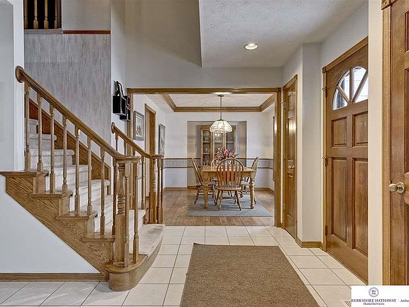 AMA - Great 2 story home has 4 bedrooms 3 bathrooms, 2 car garage with over 2600 fsf. Features include 2 story entry, ceramic tile entry, hardwood floors in kitchen/ formal dining room. Spacious owners suite complete with sitting room, 2 walk in closets, dual vanity, shower and whirlpool tub. Main floor laundry. Unfinished basement with nice square footage to design your own space. Large flat lot in cul de sac, mature trees, sprinkler system in the Millard School District. Sold AS- IS