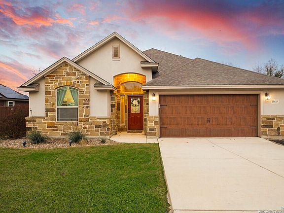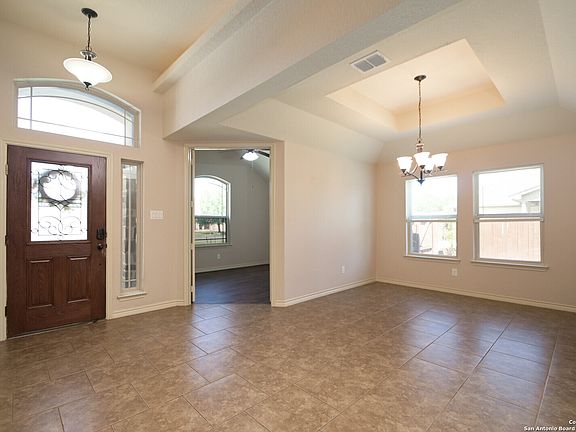This beautifully designed 4-bedroom, 2-bathroom home offers the perfect blend of style and functionality. The open-concept layout is filled with natural light, highlighting elegant arch entryways and thoughtfully designed display areas. A versatile Bonus Room allows you to customize the space to fit your lifestyle. Outdoors, enjoy an oversized patio and lush pear trees, creating a private oasis for relaxation or entertaining. Plus, with no HOA restrictions, you can even park your RV/boat on the property! The garage features durable epoxy floors, adding to the home's modern convenience. Close drive to the Forum, Randolph AFB and Fort Sam. PAID OFF Solar Panels so you can enjoy low electric bills and a cool home during those hot Summer months.