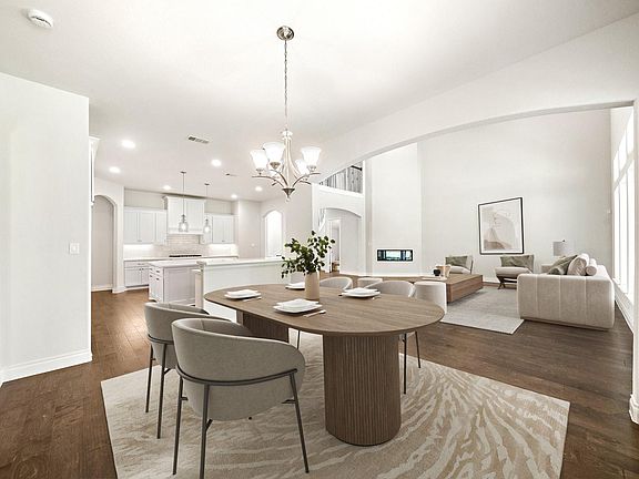2-story home features a grand entry with 21’ ceilings. An oversized chef’s kitchen includes stainless steel built-in microwave and oven, 36” cooktop, and dishwasher. The open concept family and dining rooms look out onto the extended covered patio complete with brick columns. A luxurious master bath includes a freestanding tub, separate shower, His & Hers vanities, and separate walk-in closets. Upstairs includes 2 bedrooms, 2 bathrooms, game room and a theater room. This home has a HERS score of 50.