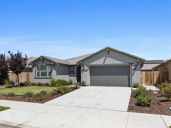 Welcome to this newer built charming house located in the Graham Grove Community of Bakersfield. This magnificent property features 3 bedroom, 2 bathrooms, 1,694 sq ft of living space on a 6,534 sq ft lot. As you enter this beautiful house you are greeted by its spacious living room, open kitchen with custom cabinets, GE stainless steel appliances and granite countertops, and an amply dining area. Additional features included private master bedroom with its own en-suite, high ceiling throughout, recessed light, laminate floors, finished backyard with custom landscaping and automatic sprinklers, tank-less water heater, home alarm system, no HOA fees and solar panels.