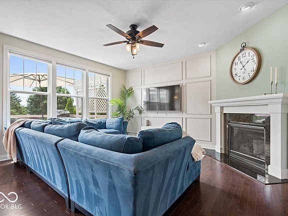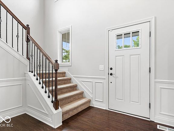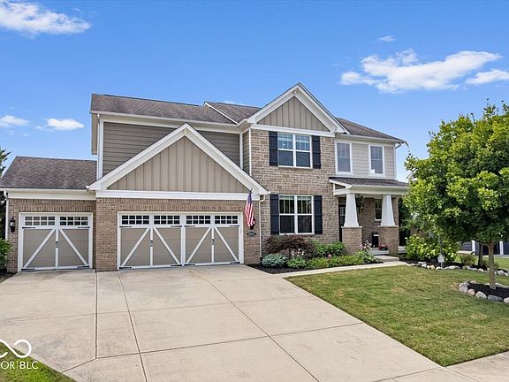 This Viking Meadows home offers amazing curb appeal, a welcoming covered front porch, thoughtful updates, & a functional layout just steps from the neighborhood clubhouse! Inside, a remodeled front office w French doors opens to an inviting entryway that leads into a bright, open-concept living space filled w natural light. The kitchen features granite countertops, a spacious island w an updated backsplash, SS appliances, & a custom built-in seating bench w storage. Just off the kitchen is a private desk area- perfect as an additional workspace. The family room showcases elegant wainscoting & a corner fireplace overlooking a private, fenced backyard - ideal for gatherings, or quiet evenings. A newly painted deck w a pergola leads to a new paver patio w a wraparound bench, creating plenty of space for outside dining, lounging, or entertaining. The finished 3-car garage includes a large bump-out & plenty of built-in storage. Upstairs is a spacious loft providing an additional living space for relaxing, working, or play. The primary suite is set apart for added privacy & features a walk-in closet, dual sinks, & a separate shower & garden tub. The additional 3 bedrooms w custom closets share a full bathroom w double sinks. The upstairs laundry room adds extra convenience & keeps everyday living simple & efficient. The finished basement has versatility, offering a large open rec space, full bath, & a unique rock climbing wall adding character & fun. Set in a vibrant community w a clubhouse, pool, tennis court, and access to Monon Trail. This home is conveniently located near local stores and restaurants - perfect for golf cart rides to Target or Urban Vines. With easy access to SR31, getting around is a breeze. Recent updates include a new water softener, new water heater, updated paint throughout, refreshed landscaping, an invisible electric fence that runs the full perimeter of the property. Exceptional location + Thoughtful updates = A place you'll love to call home!