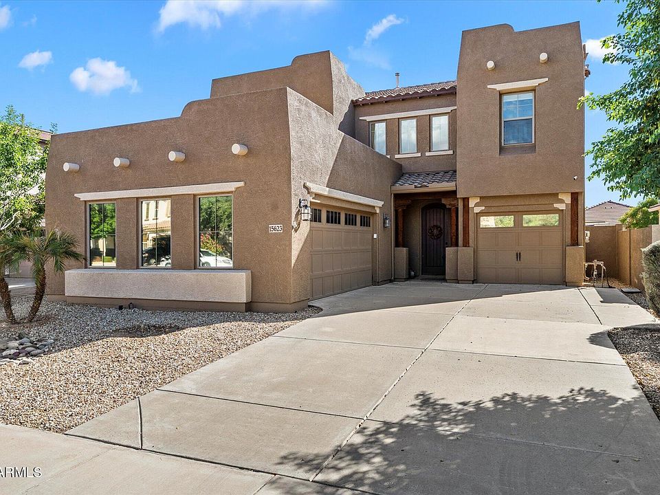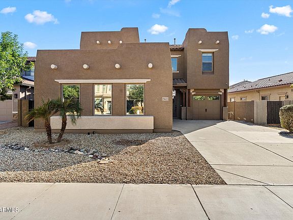 Tucked within a peaceful cul-de-sac, this two-level home captures ideal N/S sun exposure and the essence of modern sophistication. Step inside to discover brand-new 2024 A/C units, luxuriously redesigned bathrooms, and owned solar for energy efficiency. The relaxing backyard beckons with a PebbleTec, salt pool and low-maintenance landscape, perfect for effortless relaxation. A spacious 3-car garage offers ample room for storage and convenience, while all bedrooms, including the laundry suite are privately situated upstairs for optimal comfort and flow. A truly turn-key sanctuary in the heart of Goodyear.