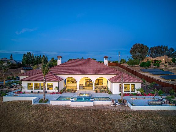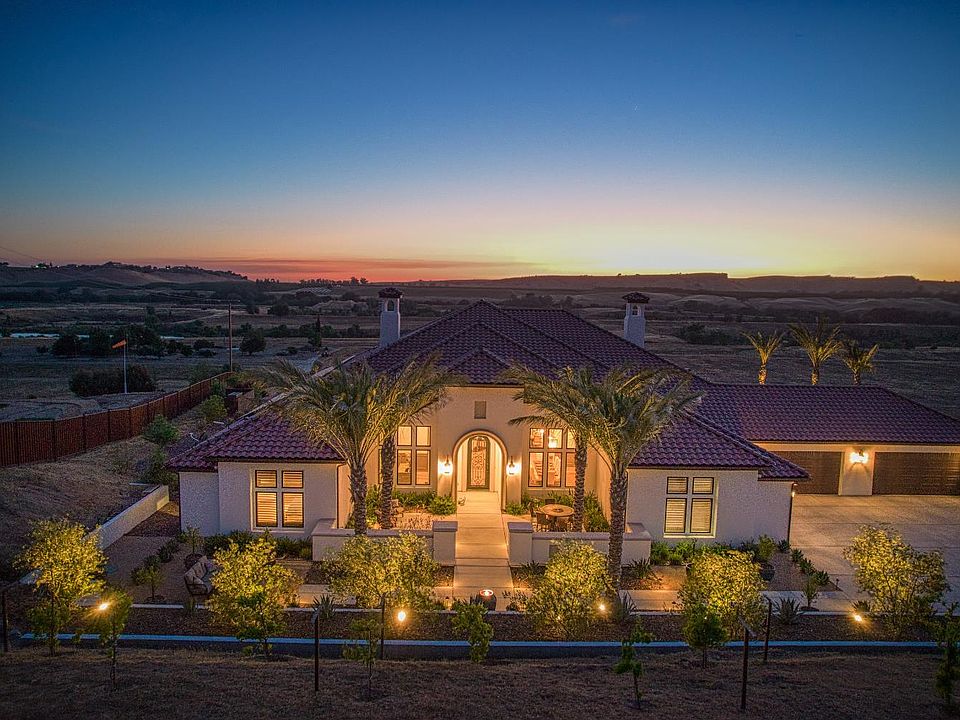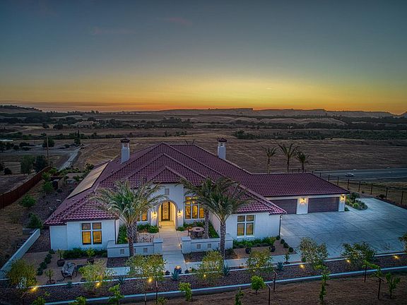 Perched above the San Joaquin River with sweeping views of the Tabletop Mountains, this 2023 custom build by Cornerstone Homes offers one of the most breathtaking settings in the Central Valley. Set on 2.5 gated acres, the 6,501-square-foot residence delivers seclusion and sophistication all within 5 minutes from Copper River. The architecture speaks of timeless beauty. White stucco walls, arched entryways, and wrought-iron accents reflect Santa Barbara style, while soaring 15-foot ceilings and artisan details define the interior. A reclaimed wood ceiling over a century old sourced from a California mission adds history and warmth, complemented by hand-stained moldings, handcrafted tile, and European oak floors throughout. This residence is more than custom it is truly one of a kind. Open, light-filled spaces flow seamlessly, with the family room, kitchen, and dining areas framed by graceful arches. A 20-foot sliding glass wall and expansive windows capture river and mountain views. The main kitchen is a culinary showpiece with Wolf appliances, custom cabinetry, quartzite surfaces, and masonry stone accents. A secondary kitchen with reclaimed wood shelving ensures effortless entertaining, while a masonry stone-framed wine cellar holds 270 bottles. Additional living spaces include a paneled study, an expansive game room with panoramic windows, and a six-car garage. Five en-suite bedrooms provide private retreats with spa-inspired baths the primary suite opening directly to the backyard oasis. Two powder rooms add guest convenience. The pool and heated spa overlook sunsets, the river, and the mountains. Expansive patios and a quartzite outdoor kitchen make gatherings effortless, while date palms, olive trees, and landscaping complete the Santa Barbara aesthetic. The home is built for today: Savant smart automation, whole-home audio, motorized shades, advanced insulation, and a 12.5 kWh owned solar array for net-zero energy. Though serene and private, the estate is minutes from Copper River. Families enjoy Clovis Unified schools, food lovers savor local dining, and outdoor enthusiasts explore nearby trails, lakes, and golf courses. State-owned land protects the setting ensuring views remain forever unobstructed.This estate is for the discerning buyer someone who values design, privacy, and the ability to entertain and retreat.With commanding views, timeless architecture,and resort-style amenities,it is more than a home it isCalifornia living, reimagined.