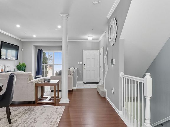 Welcome to this beautifully maintained home in the highly sought-after Chaddsford community of Brandywine, Prince George’s County. Offering the perfect blend of style, comfort, and convenience, this townhouse is just steps from shopping and entertainment, with easy access to National Harbor, Andrews AFB, downtown DC, and major shopping centers. The sun-filled main level features an open-concept living room with gleaming hardwood floors, elegant columns framing the dining area, and a half bath for guests. The spacious eat-in kitchen boasts 42” cabinets, ceramic tile flooring, granite countertops, stainless steel appliances, and a walk-in pantry, with direct access to the deck for outdoor entertaining. Upstairs, the large owner’s suite is a true retreat—generous in size, fitting a king-sized bed with ease, and offering a walk-in closet and spa-like ensuite bath with double vanity, soaking tub, and separate shower. Two additional bedrooms share a full hall bath, providing plenty of space for family or guests. The fully finished lower level offers incredible versatility with a cozy fireplace, perfect for relaxing evenings, along with a bonus room that can serve as a fourth bedroom, home office, or recreation space. Select rooms are already prepped for TV mounting, giving you a seamless setup for media and entertainment. Additional highlights include a brand-new roof with 50-year shingles, two assigned parking spaces right in front of the home, abundant visitor parking, and community amenities in a prime walkable location.