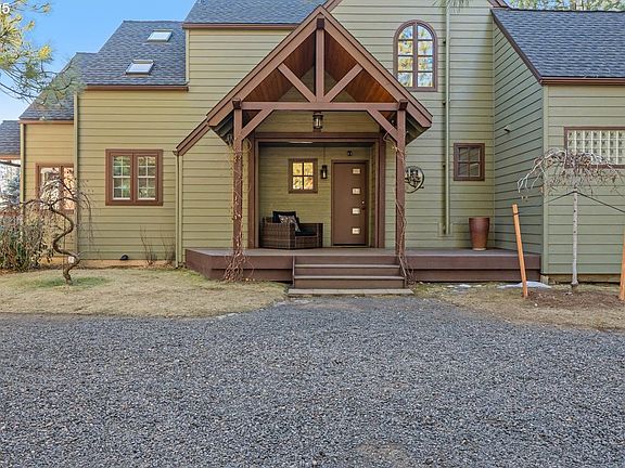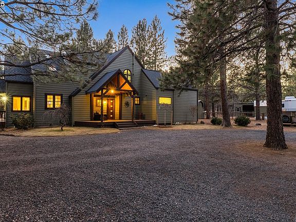 Beautifully Renovated Home in Trapper Point Horse Community! Step through the handcrafted art deco gate to discover the incredible features of this property and its prime location! With direct and unlimited access to the National Forest and the Sisters Tie trails, this home is also within walking distance to downtown Sisters, making it a rare and highly desirable opportunity. This artistically renovated residence offers 1,852 square feet, including three bedrooms and three bathrooms, all designed with an open-concept kitchen, dining, and living room layout. The primary bedroom and laundry are conveniently located on the main floor, characterized by unique touches, such as custom doorknobs. Upstairs, you’ll find two additional bedrooms, an office, and a bathroom, all connected by a distinctive hand-forged metal staircase and featuring vaulted ceilings and Minka Aire aviation fans. Large windows enhance the natural light throughout the home, reminiscent of pages from Dwell magazine. As a bonus, there is a long term rental option with the one-bedroom, one-bathroom 569 square foot (ADU) located above the spacious three-car garage. This thoughtfully designed home spans 2.2 acres, featuring professional landscaping and an enclosed garden area. The shaded backyard includes a large, covered porch—perfect for farm-to-table dinners—and is adorned with mature trees. Enjoy cozy evenings around the fire pit or take a stroll into town for local farmer's markets. The functional barn setup allows horses access to their stalls or covered turnout. Currently set up for two stalls, there is potential for up to four, along with tack and feed rooms. Additional storage space includes blanket racks and shavings. The property is fully fenced and cross-fenced, with ample room for trailer or RV parking. Truly an urban equestrian and trail rider’s dream. Walk, bike or ride your horse to town, no need for a car.