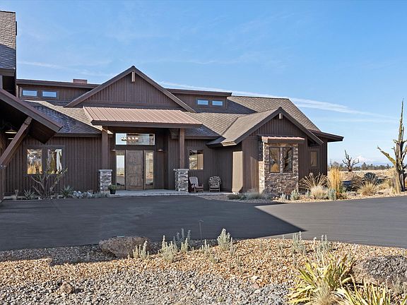 Stunning NW Style 3BD/4.5BA home with bonus room, office, and RV garage perfectly captures the architectural flavor of Brasada Ranch. You are greeted with panoramic views of the Cascade Mountains from the large windows in the great room that features a custom rock & steel fireplace w/ a reclaimed wood mantle. Extensive beam work with nearly 30' of vaulted ceilings. This open plan flows to the kitchen/dining area with custom cabinetry, high efficiency appliances, Subzero column fridge & more. Looking west from the large kitchen island, the fully stackable doors create a beautifully placed view corridor that captures The Three Sisters from both the kitchen & dining area. Beyond the doors is a large patio with an outdoor kitchen & gas fire pit to take in Brasada's sunsets. The primary bedroom is positioned to offer expansive mountain views while blending a rustic warmth that flows into the radiant heated floors of the primary bathroom. All bedrooms are ensuite and feature walk-in closets.
