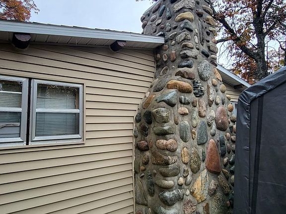 New roofNew hot water heaterElectric stoveComfy recliner love seatNew plumbingBreathtaking fieldstone fireplaceNew ceiling fan
