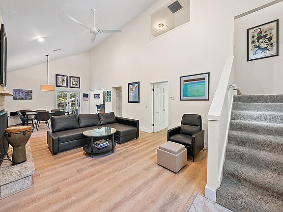 Tucked away on a paved road on the desirable east side of Jupiter Farms, this property offers privacy, space, and flexibility, with a new roof completed in June 2025. The backyard provides room to roam, and the pole barn can be used for animals, storage, or hobbies. A large screened-in patio offers a peaceful space to relax or entertain. There's also a detached workshop with electricity for projects or equipment.Inside, the great room is airy, anchored by a floor-to-ceiling Coquina stone fireplace. The main level includes the kitchen, dining, and living space, one bedroom, a full bathroom, and laundry. Upstairs are two additional bedrooms and another full bath.Zoned for top-rated schools and situated in a peaceful setting with paved road access, this Jupiter Farms location offers the best of both worlds - quiet, natural surroundings just minutes from Jupiter Farms Park, the equestrian park, miles of scenic trails, and convenient access to top parks, waterways, beautiful beaches, shopping, and dining.