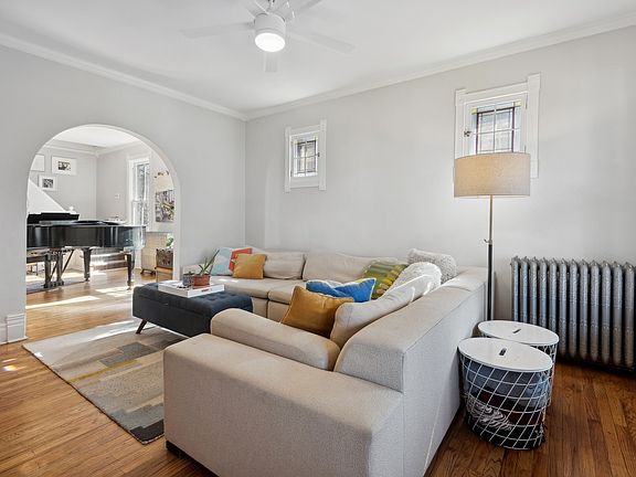 The definition of charm in Dewey school! A beautiful front porch welcomes you to the updated 1893 farmhouse. Inside you'll find flexible living space, tall ceilings and tons of natural light! Formal Living and Dining Rooms lead to a huge eat-in Kitchen overlooking the east-facing backyard. Skylights bring in a constant stream of sun. Two Bedrooms (one currently used as an office) are on the main level and the 2nd floor is a primary retreat featuring a large bedroom with vaulted ceilings and skylights. A private office/sitting room (or nursery) is adjacent to the bedroom. A large primary bathroom rounds out the 2nd level. The living space continues with a partially finished basement- a perfect guest retreat with bedroom and living space plus full bathroom. There's office/artist studio/workout area and plenty of storage. When you walk outside, you find a beautifully appointed firepit area, garden shed/play house, 2-car garage and so much room for gardening and/or play space! 3 blocks from Dewey Elementary School and a short walk to downtown Evanston, this is urban suburban at its best!