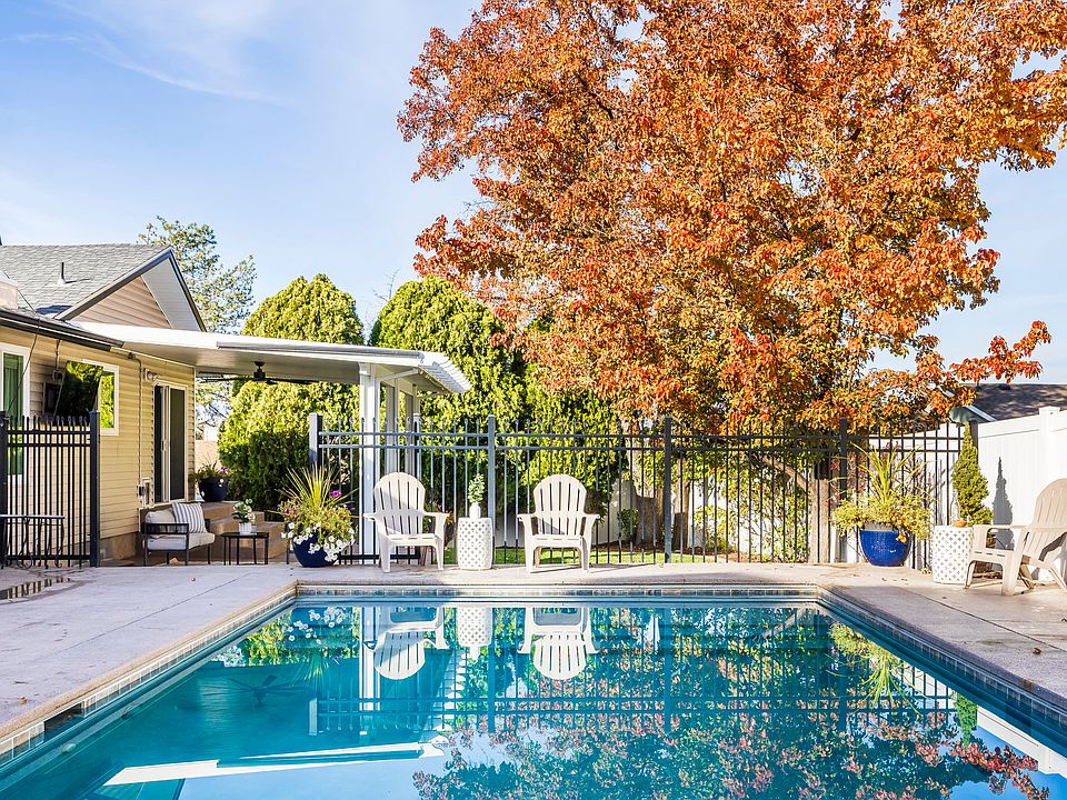 Saltwater poolSparkling in-ground saltwater poolNewer roofCovered patioModern farmhouse finishesIn-ground spaStunning mountain views