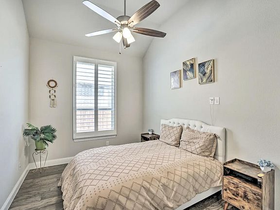 Amazing Fully Furnished Luxury 5 bedroom, 3 bathroom house in Haslet, TX with Saltwater Pool, Spa, Home Office, Movie Room and Home Gym! Amenities included: central air, central heat, dishwasher, hardwood floors, pool, stainless steel appliances, updated kitchen, updated bathroom, washer dryer, yard, home gym, movie room, home office, saltwater pool and outdoor spa/ hot tub, 86 inch LED TV's (2) with top of the line Bose sound-bar and Bose sub-woofer for ultimate entertainment experience & High Speed- AT&T FIBER INTERNET 1000. Built in Dec 2020, the model home floor plan is loaded with designer selections and High End upgrades throughout. Extended outdoor patio overlooks the recently built sparkling saltwater pool and hot tub. With an open and flexible floor plan featuring four bedrooms, two and half baths, study and separate media room that can be converted to a fifth bedroom. Chef's kitchen opens to great room and dining with built-in hutch making entertaining a breeze. Owners suite features spacious bedroom with sitting area, spa-like bath with separate tub, shower and custom walk-in closet with door to laundry room. Wood floors and plantation shutters throughout and 360 outdoor surveillance. Fully furnished home KITCHEN This is one kitchen you won't have to worry about bumping elbows in! Large and spacious with plenty of room for everyone to gather, this is the stuff dream kitchens are made of! Fully equipped for all your cooking needs, you'll find every essential kitchen appliance right here in the heart of the home. Fully equipped kitchen for all your cooking needs Stainless steel appliances, including double ovens, fridge, freezer, stove, and microwave All basic cooking essentials Plenty of counter and cabinet space DINING & BREAKFAST BAR Cheers to good food, great drinks, and even better company! Whether you prefer to enjoy a sit-down meal at the dinner table or would rather perch at the breakfast bar for a quick bite, both are available for your choosing. The opportunity to share a meal with family and friends should be cherished so we've crafted this space with that spirit in mind. Dining room table with seating for 6 Breakfast bar with seating Place settings and dining utensils Indoor plants and artwork for a restaurant-like feel LIVING ROOM AND OFFICE If you're looking for a nice indoor space to catch up with family and friends, make your way to the living room! With an elegant air of "posh meets modern", there are plenty of seating options available to cater to easy conversation. Perfect for conversations and catching up, this comfortable setting will immediately put you at ease. If you need to slip away to wrap up some work, this vacation home also has a dedicated office. Equipped with a large ergonomic standup or sit-down desk , chairs, printer and lighting, it will provide you with a quiet space to get things done. Living room with plenty of seating and coffee tables Office with a dedicated workspace 86 inch Flat-screen TV's and high-speed Wi-Fi High End Bose soundbars and Bose Sub-woofers Designer accents, artwork, and designer rug BEDROOMS There won't be anything but sweet dreams from the comforts of these bedrooms! After an exciting day exploring the local attractions, you'll want to rest up and regain your energy. These bedrooms have all been carefully furnished and designed with your comfort in mind! 3 bedrooms to choose from + a movie room that can be turned to a bedroom King-sized and queen-sized All rooms feature nightstands, bedside lamps, and decorative artwork BATHROOMS You won't have to worry about bathroom line-ups in this house! With 3 bathrooms throughout, there are plenty to choose from!! Whether you prefer a standing shower or a bathtub, both options are available to you. Come enjoy a nice hot shower or indulge in a delightful bubble bath! 3 private bathrooms throughout Walk-in glass standing showers for easy accessibility Full-sized bathtub for relaxing bubble baths Granite countertops for a high-end luxury feel BACKYARD You'll want to spend as much time as possible in this backyard oasis! Featuring an outdoor saltwater swimming pool with fountains and Spa/Hot tub, pool lounger chairs and tables, a covered pergola and seating, and plenty of options for relaxing, this backyard was designed for creating lasting memories with family and friends! Outdoor swimming pool Hammock and loungers Pergola and BBQ grill Fully fenced yard for your privacy ENTERTAINMENT Be sure to explore this house fully and enjoy some relaxing time in the outdoor spa/hottub/jacuzzi. If you're feeling competitive, challenge your friends to a pool match. Lastly, don't forget to enjoy a cozy movie night in the movie room! ADDITIONAL AMENITIES Home Gym in the Garage with Free weights, Folding bench and top of the line Force USA G6 trainer. Free parking is available to guests. There is plenty of space on the driveway as well as street parking. If additional parking space is needed, guests may park on the neighborhood streets as well. A laundry room with a washer and a dryer is available for your use. * Pets are welcome at NO additional cost. * Renter pays for Utilities: Electricity, Gas and Water. * Parking available at the garage, driveway, or street. * Smoking inside the house is not allowed! Violations are subject to a $450 fine plus the cost to clean, deodorize, and repair damages. * Pets are welcome at NO additional cost. * Renter pays for Utilities: Electricity, Gas and Water. * Parking available at the garage, driveway, or street. * Smoking inside the house is not allowed! Violations are subject to a $450 fine plus the cost to clean, deodorize, and repair damages.