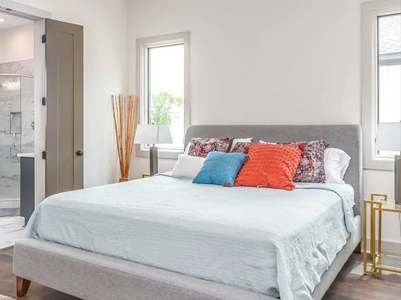 Downstairs, the primary suite offers a private retreat with a luxurious en-suite bath with soaker tub, abundant closets, and elegant finishes. Additional bedrooms upstairs provide comfort and flexibility—perfect for guests, a home office, or family.
