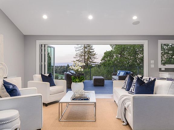 This home has been extensively remodeled inside & reconfigured outside to include amazing grounds for play, entertaining, & wellness on approximately 0.53 acre. Hardwood floors begin in the completely open design of the main living areas, which include fully retractable glass doors opening to a vast deck with golf course & Bay views. The one-level floor plan, designed with handicap accessibility, has 3 bedrooms & 2.5 baths, including a luxe primary suite with stacking glass doors to Bay views & a fully open design en suite bath. The grounds are terraced levels, each with vast space finished in decking or synthetic lawn. There is a spa, a barrel sauna, a finished treehouse with slide & rock-climbing wall, plus covered & open level space for recreation & entertaining, as well as a large sport court & studio with half bath. Located in the sought-after Country Club neighborhood, this home is less than one mile to Rancho Shopping Center & has access to excellent Los Altos schools.