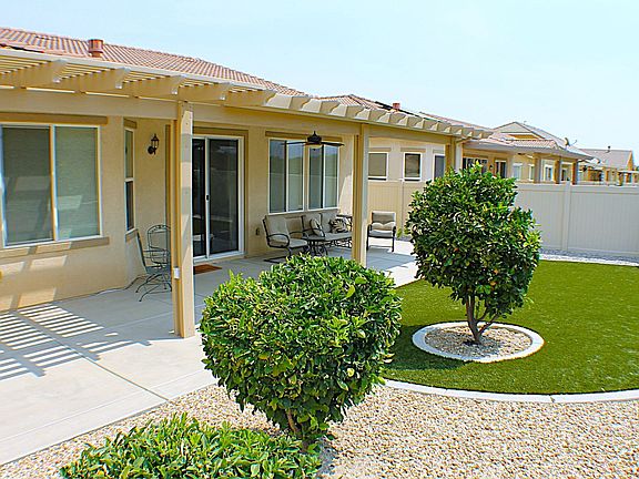 The 2-car garage includes built-in shelving and extra space for all your organizational needs. The backyard is beautifully landscaped with custom hardscape, artificial grass, and a covered patioperfect for relaxing and enjoying unobstructed hillside views from this prime location at the edge of the community.