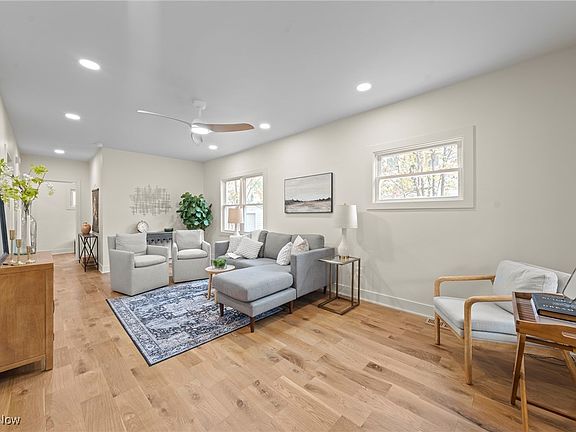 Welcome to this warm and inviting Lakewood Colonial, rebuilt from the inside out with craftsmanship rarely found in a Lakewood rehab. This true full gut renovation transformed the home into a modern, light-filled residence that truly feels brand new. A large front porch, all-new vinyl siding, and new windows set the stage. Inside, every inch has been redone — new drywall, trim, doors, a new 200-amp electrical panel with complete rewiring, all-new plumbing, and a brand-new HVAC system for year-round comfort. The first floor offers a spacious, sunlit living room with recessed lighting and real hardwood floors flowing into the dining room and kitchen. The thoughtfully designed kitchen provides plenty of cabinetry and counter space, tall 42-inch upper cabinets, quartz counters, stainless appliances, a breakfast bar, and high-end fixtures. A beautifully finished first-floor full bath features marble tile, a large vanity, and a tiled shower. A first-floor laundry room along with a generous mudroom adds modern convenience.