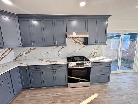 New kitchen cabinets with new stove, refrigerator, new washer, and new dryer included