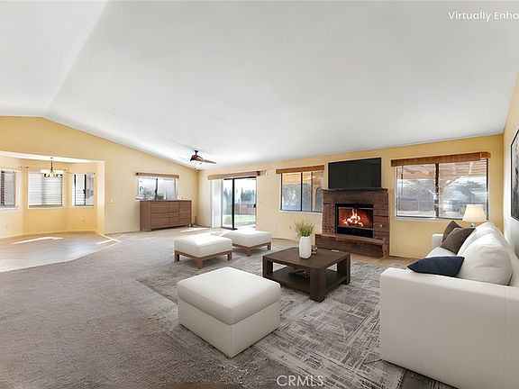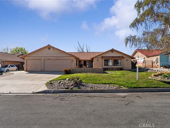 BRING AN OFFER! WELCOME HOME! LARGE PROPERTY FEATURING A HUGE LOT 18,000 SF, R.V. PARKING, 3 CAR GARAGE, WITH TONS OF POTENTIAL. Featuring 2,114 sq. ft of living space, an Open floor plan, HUGE Living room showcasing an Inviting Brick fireplace, Cathedral Ceilings, and sliding glass doors. The formal dining room could be converted into an office or additional possible 5th bedroom. The good-sized kitchen displays wooden cabinetry, tile flooring, a bay window, and ample storage. The home offers 4 Large bedrooms, each with significant closet space. The 2nd bedroom offers cathedral ceilings. The Primary bedroom has sliding glass doors to the backyard, cathedral ceilings, a ceiling fan, and walk-in closet. The Ensuite bathroom offers a dual-sink vanity and a bath/shower combo. A second full bathroom with a dual-sink vanity and a shower/tub combo serves the other bedrooms. There is also a half bathroom in the hallway. The 18,000 sq.ft. lot displays Desert landscaping, mature trees, grass, rocks, a front and back porch/patio, and R.V. parking area. The backyard has a large patio cover for shade. There is ample space for a shed, an ADU, a workshop, or to create the outdoor space of your dreams! With so much potential, and some TLC, updating, etc. this home is a blank canvas, ready for new owners to personalize and make it their own.