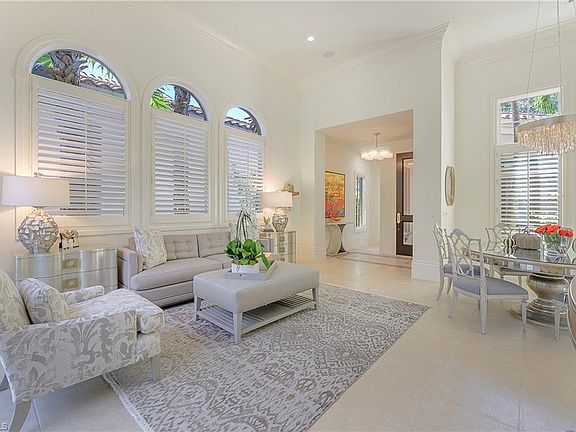 H188 The inviting courtyard entrance welcomes you to this newly renovated 3 Bedroom 3.5 Bath home in Mediterra Golf and Beach Club. This former model has designer touches throughout. The volume ceilings, transoms and 10ft doors add to the expansive feeling of the home. The Foyer, accented by a custom John Richard chandelier, forms an elegant entrance to the light filled home, as it flows into the Living/Dining Room, perfect for entertaining. Custom drapes on an acrylic rod frame the setting. The outdoor space boasts a large outdoor seating/TV area, as well as an outdoor grill. The kitchen features all new appliances with gas cooktop and newly designed island counter seating. The breakfast room window seat, overlooking an orchid garden, forms a welcome retreat, while adding warmth to the home. The garage has new custom cabinets with pullouts and a work bench for convenience. All bedrooms are ensuites, two of which have private entrances to the outdoor space. Some furnishing may be available. Villoresi HOA fees include both pool and full landscaping service for maintenance free living. Quick close possible. Mediterra features a Beach Club and 2 award winnng Golf Courses.