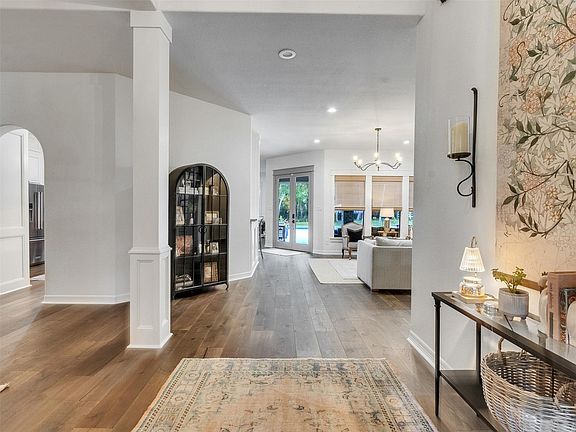 Cozy fireplaceFenced areasNew appliancesNew flooringCurved window wallCustom built-insQuartz countertops