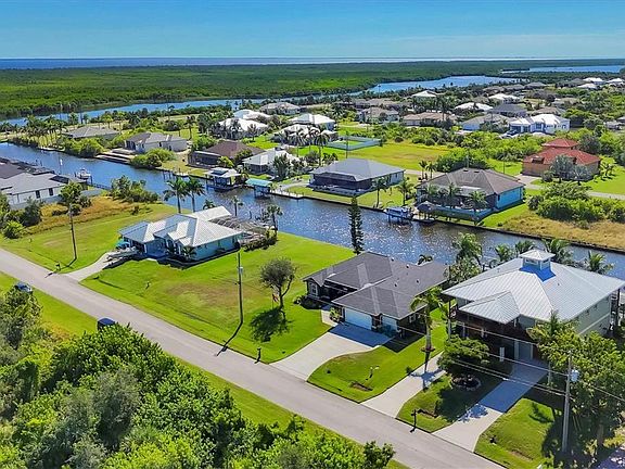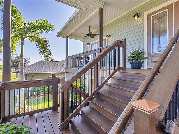 Sailboat Waterfront Retreat with Pool, Dock, Lift & Key West Charm! When you walk up, you’ll be WOWED by the dual staircase entry and gorgeous front porch, perfect for watching the sunrise over Charlotte Harbor. This Key West–style two-story home captures the best of coastal living with thoughtful design, modern upgrades, and incredible outdoor spaces offering both sunrise and sunset views. The main living area is lined with custom impact windows and doors, flooding the space with natural light and showcasing beautiful water views. A stunning cupola with lighting adds architectural charm and a warm coastal glow throughout the home. Inside, you’ll find gorgeous bamboo floors, plantation shutters, and a bright office/music room perfect for creativity or quiet focus. The updated kitchen features stone countertops, custom cabinets, a wine fridge, and a beautiful American cherry butcher block island, a true centerpiece for gathering and entertaining. Both upstairs bedrooms offer stunning views and French doors that open to the beautiful front porch, creating the perfect spot to enjoy morning coffee or gentle coastal breezes. The primary suite features a large walk-in closet and a spa-like en-suite bathroom with an updated shower and elegant finishes. The guest bedroom includes a charming barn door, abundant natural light, and its own en-suite bathroom with gorgeous coastal tile, a designer backsplash, and thoughtful updates throughout. Together, they create a perfect split plan that combines privacy, style, and comfort. Built with full ICF (Insulated Concrete Form) construction, this home provides exceptional energy efficiency, hurricane protection, and soundproofing. The solid concrete design helps maintain consistent indoor temperatures, lowers energy costs, and ensures lasting durability and peace of mind. Step out onto the screened back patio, designed for the ultimate in outdoor entertaining. Enjoy breathtaking sunsets over the water while relaxing to your favorite tunes through the built-in Bose outdoor speakers. A convenient door leading directly to the dining room makes it easy to flow between indoor and outdoor spaces — perfect for gatherings, dinner parties, or simply unwinding at the end of the day. Downstairs, you’ll find a spacious in-law suite featuring its own private porch, vinyl flooring, and custom impact windows that fill the space with light. It includes a comfortable bedroom, bathroom with a walk-in shower, and a large living area that opens to a private deck with a sunshade—perfect for relaxing or entertaining. Ideal for guests, extended family, or private living quarters, this space offers comfort and versatility. Outback, relax by the heated saltwater pool with sunshade and new pool pump (2025). Boaters will love the 10,000 lb Deco boat lift, dock with water and electric, and sailboat access (NO BRIDGES) to open water just minutes from the lock. Additional features include a whole-house Aquasana water filtration and conditioning system (10M gallon capacity), heat pump water heater, 3-zone AC with an extended 10-year warranty, SimpliSafe security system, and an avocado hybrid Hass tree for a touch of tropical charm. The home also has an elevator shaft already in place, currently being used for storage but ready to be upgraded for future elevator installation if desired.