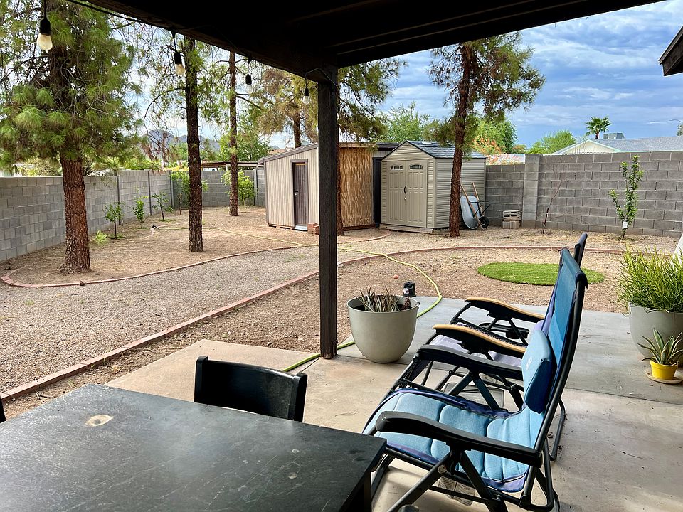 -Gorgeous backyard (shaded patio) with pine and fruit trees