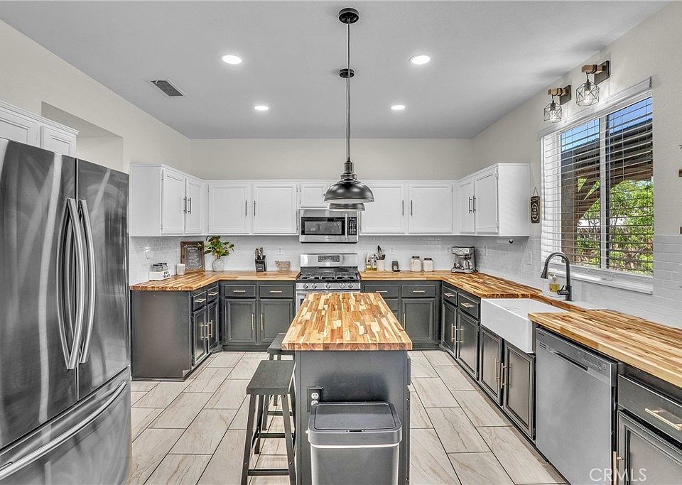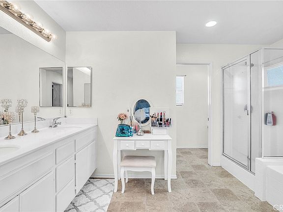 Beautifully updated 3-bed, 2.5-bath home with open loft (optional 4th bedroom), formal living, family room with fireplace, and spacious kitchen featuring butcher block counters, farmhouse sink, and stainless steel appliances. The primary suite includes dual closets, a soaker tub, and a walk-in shower. Enjoy a large garage, a new backyard gazebo, and easy access to shopping and the 15 freeway.