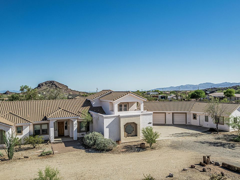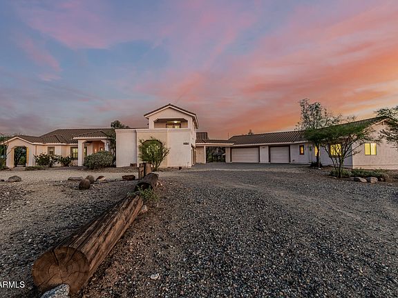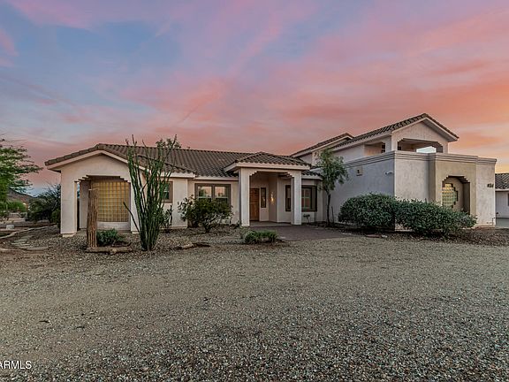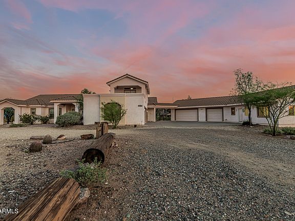 Car lovers and business dreamers—this one's for you! This 3-acre Surprise property is a rare find with TWO 3-car garages—yes, a 6-car setup that's a car enthusiast's paradise. The main home features 5 beds, 3.5 baths, a den, no carpet, and sleek laminate floors. The detached guest suite has 2 rooms, a kitchenette, half bath, and a common area—perfect for multigenerational living, a rental, or your next business HQ (it was used as one before!). Horse-ready with mountain views and endless potential. Full-price offer includes home warranty + paint in your colors!